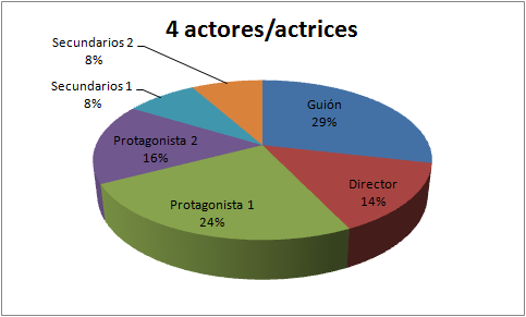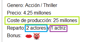 - El coste de producción del guión es menor que 25 millones (o coste menor que 20 millones para los que tienen 4 o más actores/actrices)